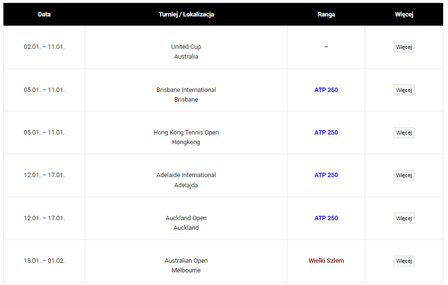 Jeszcze nie zaczął się sezon 2026, a na naszej stronie możecie już znaleźć kalendarz turniejów ATP Tour z terminami, rangami oraz opisami! Każde zawody zostały opisane z naciskiem na historię, ciekawostki, występy Polaków oraz specyfikę nawierzchni, co może okazać się bardzo ważne podczas typowania.