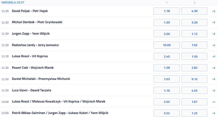 Przed nami już III kolejka LOTTO SuperLIGA, a w niej kilka bardzo ciekawych spotkań. Na kortach zobaczymy uczestników Wimbledonu, a wśród nich zwycięzcę (Kubot) oraz półfinalistę (Janowicz) tego szlema! Nasz partner forBET wystawił kursy na cały sezon jak i III kolejkę, więc zapraszamy do sprawdzenia!